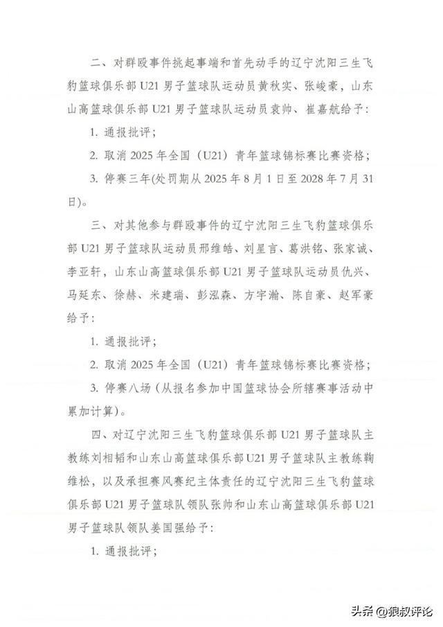 此前,遼寧和山東青年隊爆發(fā)沖突,張峻豪,黃秋實被定義為對群毆事件挑起事端和首先動手的運動員,兩人遭到禁賽三年的重罰,不能參加中國籃協(xié)體系的任何正規(guī)比賽。