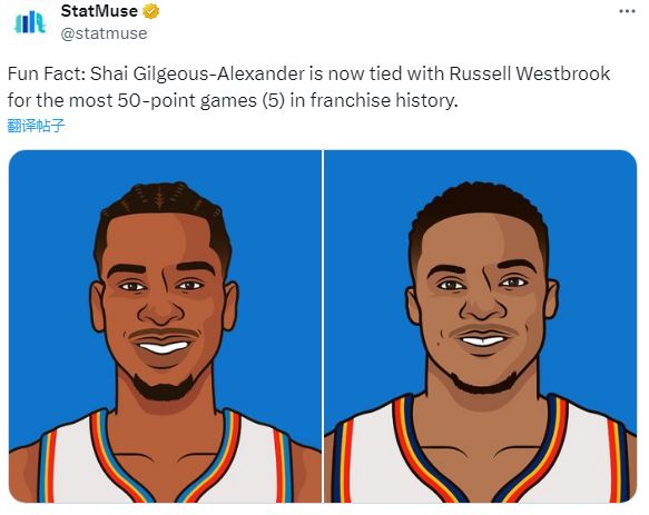 亞歷山大在雷霆已經(jīng)5次砍下50+,超越了杜蘭特,與威少并列雷霆隊史第一。此外,亞歷山大前兩場比賽已經(jīng)獲得40次罰球,排名NBA歷史上前兩戰(zhàn)罰球次數(shù)第一。