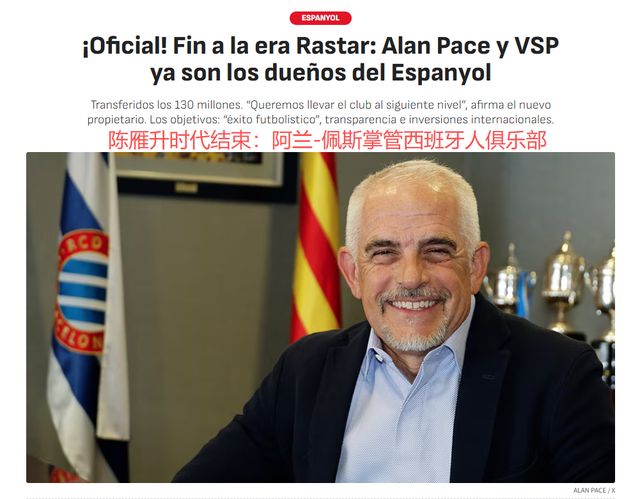西班牙人俱樂部的新老板阿蘭-佩斯,英超球迷不會陌生。