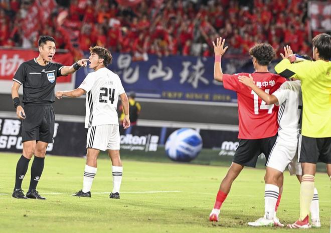 而當(dāng)值主裁中國金哨名寧,再次引發(fā)了熱議。他不僅短時間連出2黃罰下了加拉法體育隊的教練,更是對前皇馬鋒霸何塞盧怒喊“get out”。